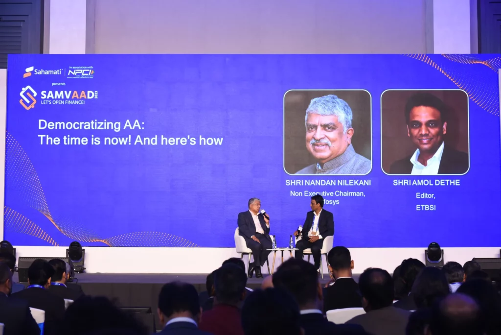 During Sahamati’s SamvAAd May 2023 event held at Westin, Powai in Mumbai, Mr. Amol Dethe, Editor of ETBSI and a prominent finance journalist, engaged in a fireside chat with Mr. Nandan Nilekani. Nandan is India’s pioneer in realizing the dream of Public Digital Infrastructure at the base of the transformative force driving emergent India.