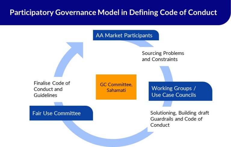 The Councils’ purview extends beyond Fair Use Template discussions to formulating common codes of conduct and technical guardrails governing AA usage. Sahamati, as the custodian of community assets (such as fair use template library, common codes of conduct, etc) oversees the Councils’ activities to ensure alignment with the overarching goals of the AA framework. It also promotes alignment with the principles of the DPDP Act, keeping the interests of the end Customer at the center.